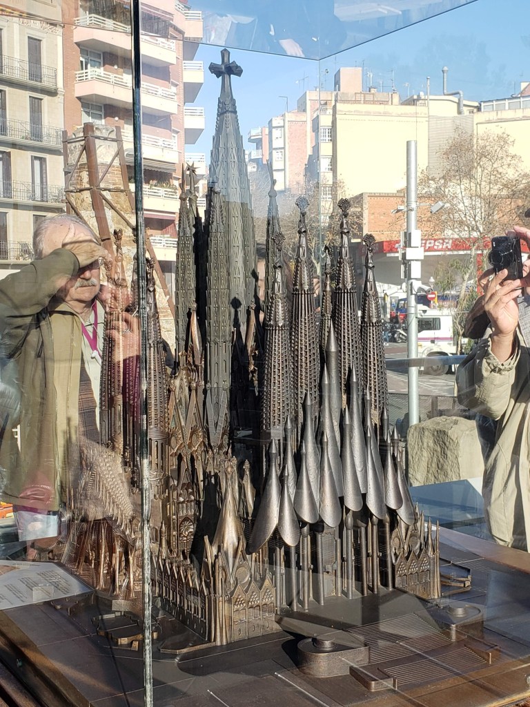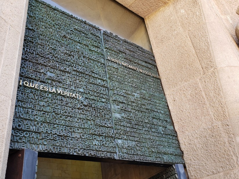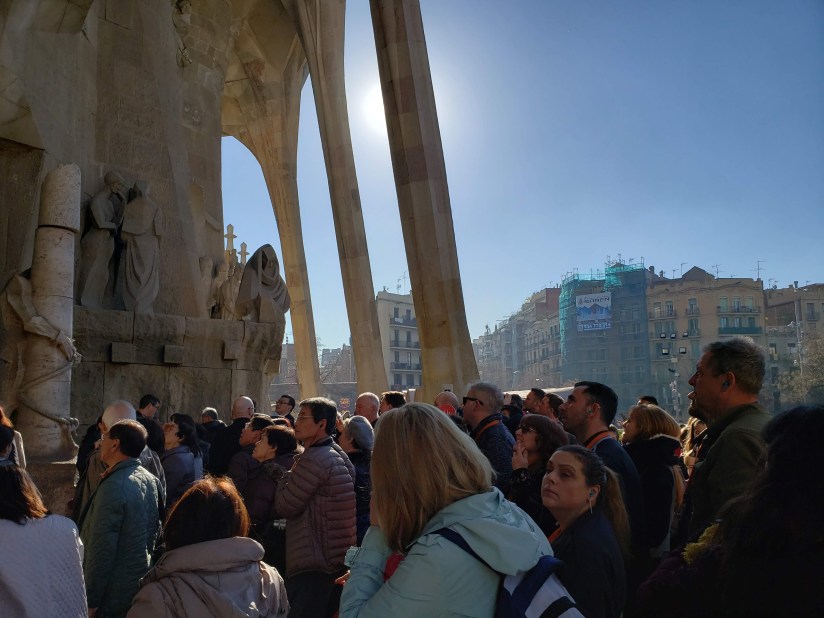 I booked my ticket online to visit the Sagrada Familia at 10am. I reasoned, several days ago, that even with jet lag, I’d be up early enough to make that work. Cut to me waking up at 6:45am. Like, fully, wide awake. I head to the Sagrada Familia and ask the entrance guard if I can enter early — at 9am. He says (in Catalan, Castillian Spanish, Spanish-Spanish, maybe Polish, but mostly English), “Yes. But only ten minutes early.” There goes my plan to do the church early so I can catch the train to Montserrat early (intentional foreshadowing of the following post). I wander around the gift shop a bit and look at some of the Sagrada Familia books. I figure, maybe if I look at enough of the ‘stuff’ in books I won’t take so long inside. Cool, it’s 9:15.