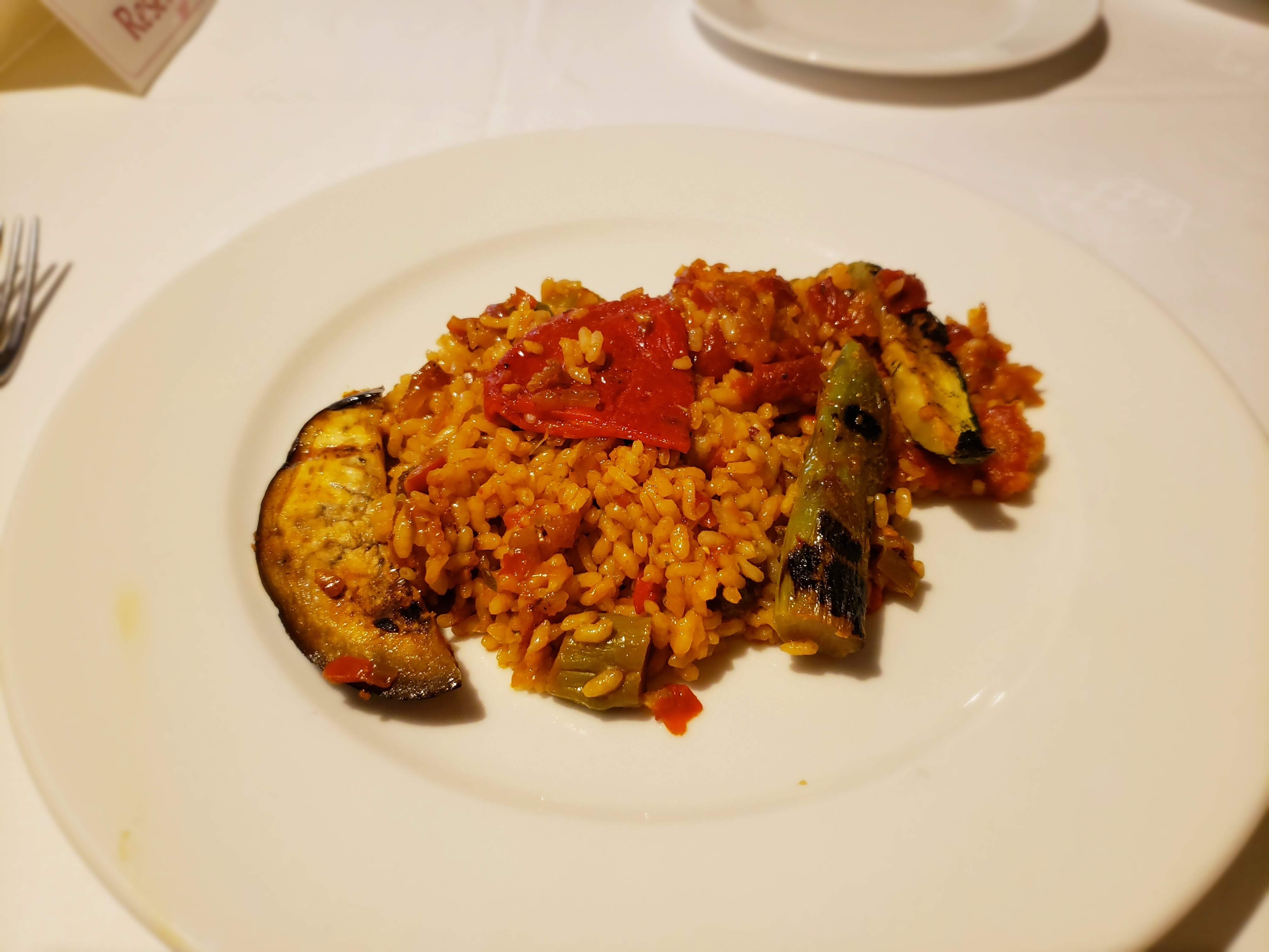 My original plan had been to arrive early to Plaza Espanaya (for the 12:36pm train, remember) and enjoy a leisurely lunch before the ride to Montserrat. Since I had made the impromptu decision to nix that plan and instead rush to the earliest train, I arrived at Montserrat with a healthy appetite. Normally, I’d grab a simple sandwich for lunch but my hunger made me prioritize proximity and my hotel had a fancy-looking restaurant. I’m glad for my choice because it was a cool little spot (with delicious vegetarian paella). You can see in the photo that the restaurant looks like a cave. The stone ceiling is from the old stables. I thought to myself about how those poor horses had to climb to the top of the mountain. When I hiked the Grand Canyon, I saw mules on the pathway carrying supplies, including things like M&Ms and beer. I wonder what 16th-century-indulgences the horses of Montserrat carried.