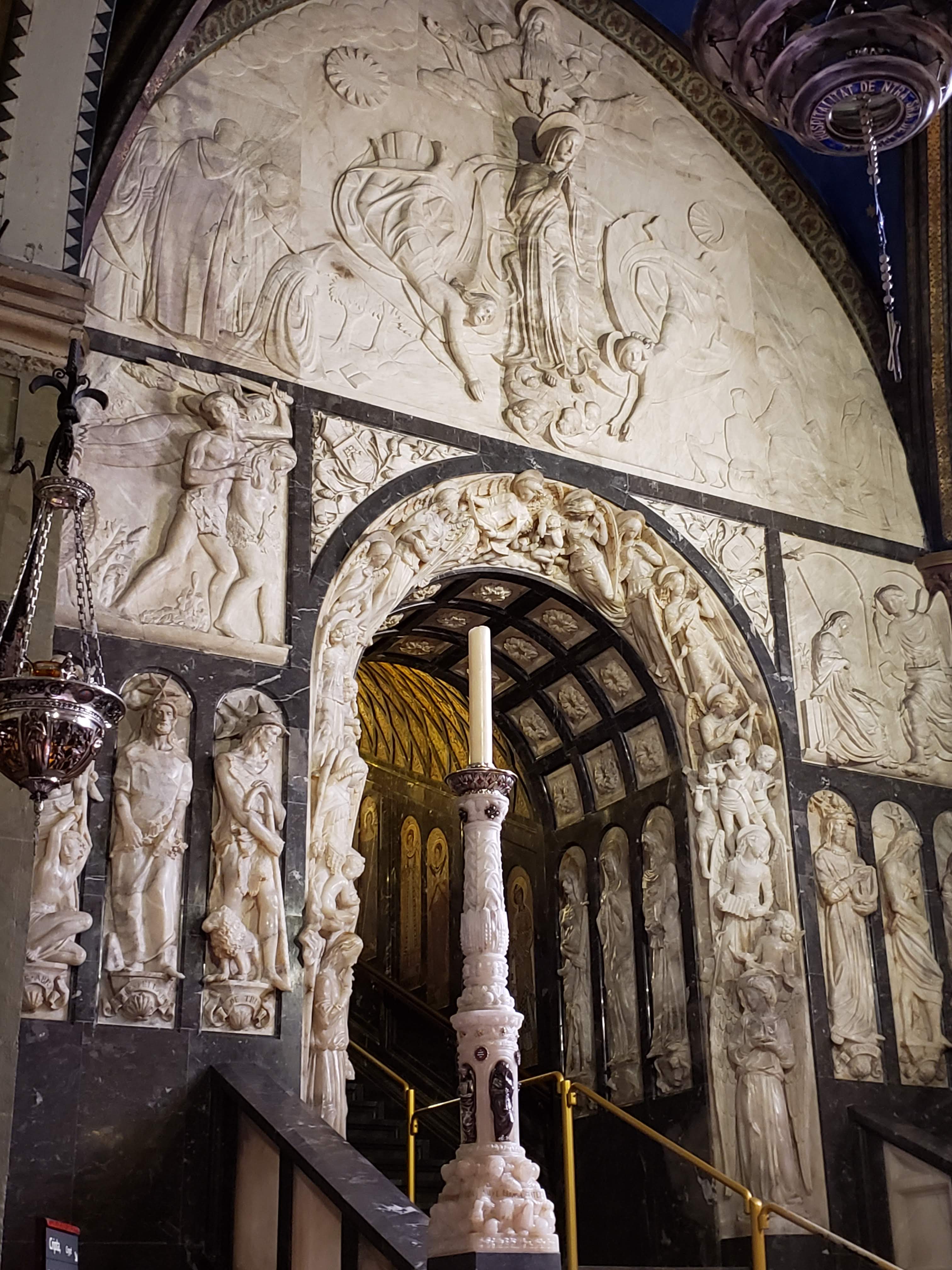 After all this preamble, I’m going to trust in the adage that a picture is worth a thousand words and let you glimpse inside the church through my photos. (And eventually through my vlog!) I will use just a few words to say that it was absolutely incredible. It was the brightest, most stained-glass-kissed church I’d ever seen. It was ancient and modern, all at once. Sacred yet superficial. Awe-inspiring in its excessive extravagance with a ‘don’t take me too seriously’ wink.