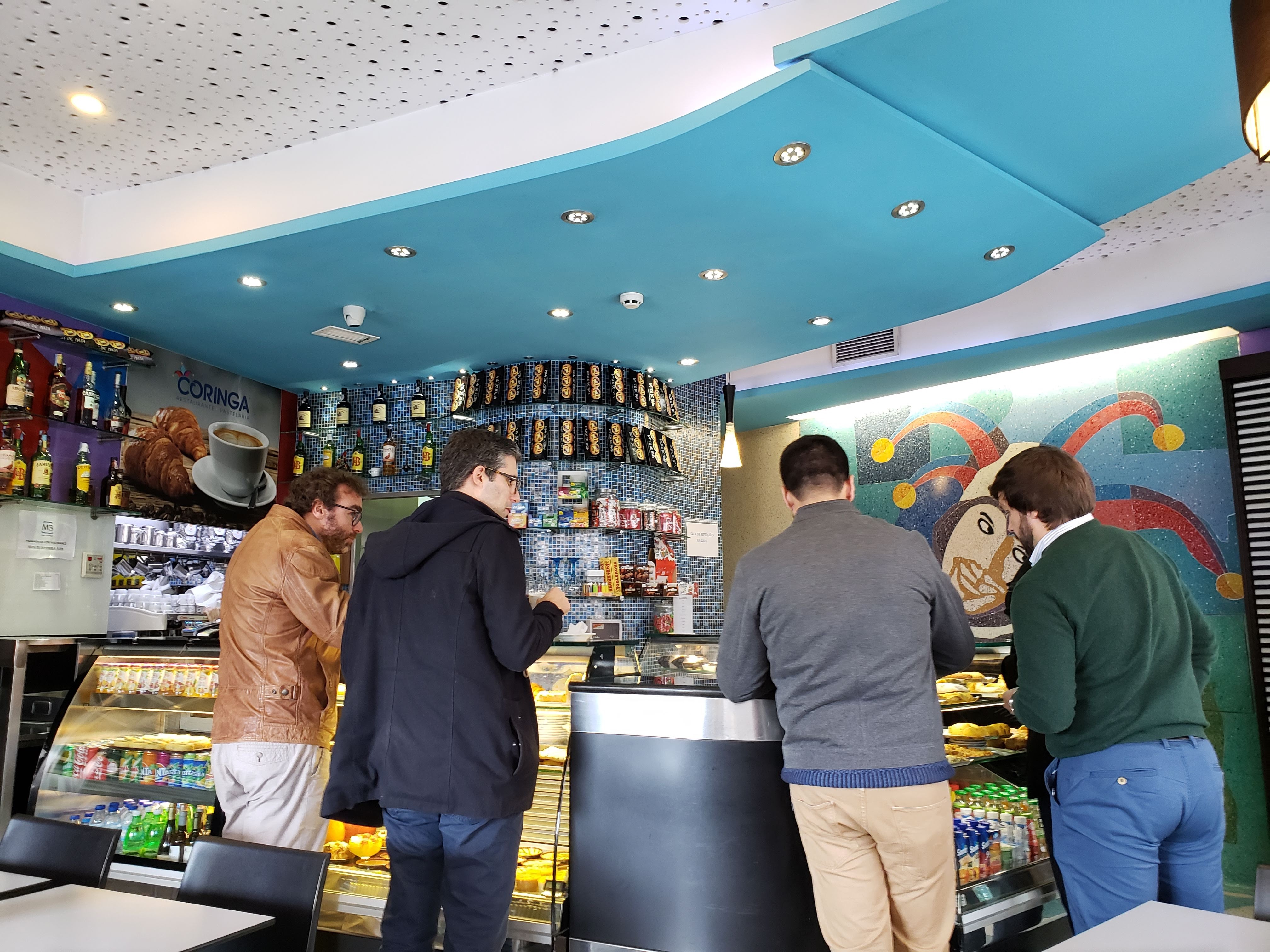 The original “fast food” — workers enjoying their espressos and sandwiches while they stand.